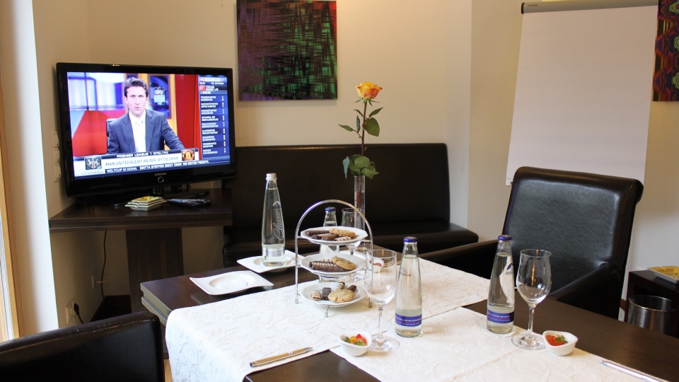 Alle oben aufgeführte Leistungen sind inklusive. Noch zusätzlich benötigte Konferenz- und Präsentationstechnik, die Getränke zum Mittagessen, zusätzliche Getränke sowie eventuelle Sonderbestellungen sind nicht im Seminarangebot inkludiert und werden bei Bedarf separat in Rechnung gestellt. Die Konferenzgetränke werden in Kühlelementen auf die Tafel eingesetzt. Die Kaffeepausen, das Mittagessen sowie ein eventuell vorgesehenes Abendessen arrangieren wir im Restaurant, bei schönem Wetter auf einer unserer Terrassen. Die gastronomischen Bestandteile der Kaffeepausen können auf Wunsch auch im Tagungsraum bereit gestellt werden. Bei mehrtägigen Veranstaltungen werden die gastronomischen Komponenten zu jedem Anlass variiert. Unsere Servicemitarbeiter stehen Ihnen auf jeden Fall jederzeit gerne zur Verfügung.